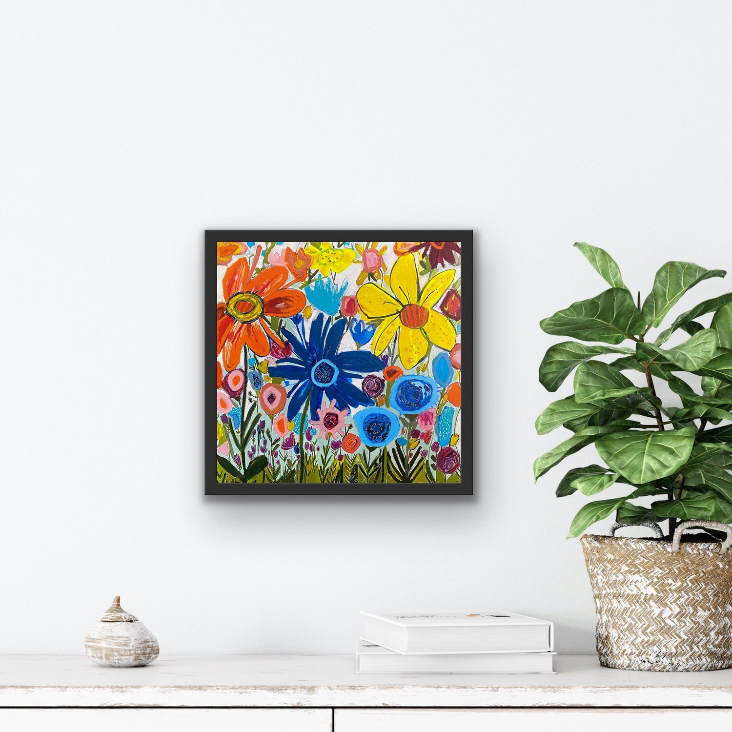 Fine Art Prints 12”x12” Afternoon in The Garden / Burst of Colourful Flowers / Orange Blue and Yellow
